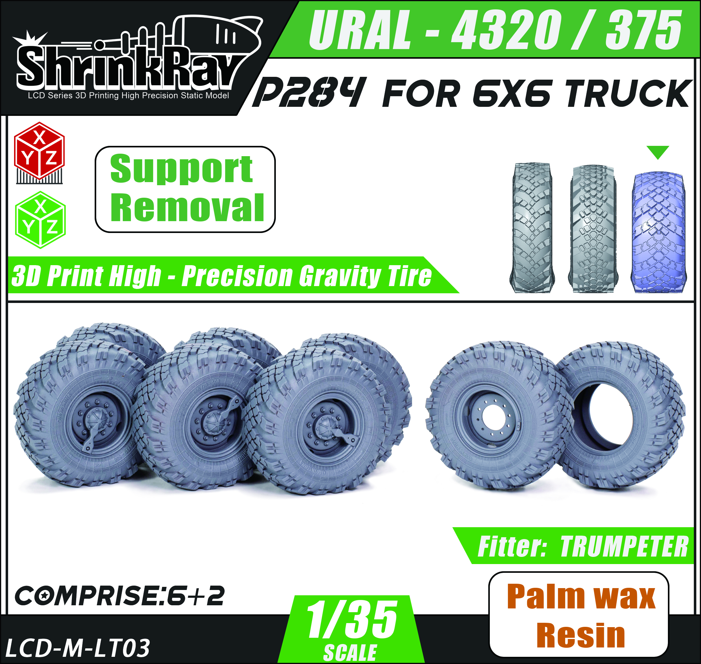 1/35 URAL-4320/375 P284 Slightly wider tires — High-Precision 3D-Printed Gravity Tires